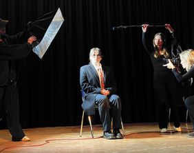 Der Darstellende-Spiel-Kurs der Jahrgangsstufe 9 wagte sich mit „König Ödipus“ (frei nach Sophokles) an einen Stoff der Weltliteratur. Trotz der Komplexität des Themas gelang eine spannende, moderne Umsetzung, die das Publikum nicht zuletzt mit tollem Spiel und beeindruckendem chorischem Sprechen fesselte.