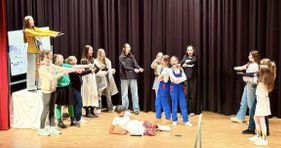 Als wichtiger Bestandteil des Programms bereiteten auch die Chornummern nicht nur den Ausführenden Freude. Mit spritzigen Choreographien und spürbarer Freude am gemeinsamen Auftritt rissen die Ensembles das Publikum mit. Für die Sänger*innen war es das erste Mal, dass sie in einem Musical auf der Bühne standen. Die Chorklasse und die Mitglieder der Chor-AG hatten bislang vor allem Konzerte gestaltet und sammelten mit dieser Aufführung neue Bühnenerfahrung im Bereich Musical. Dennoch bewegten sie sich sicher und abgestimmt und setzten die einstudierten Abläufe zuverlässig um.
