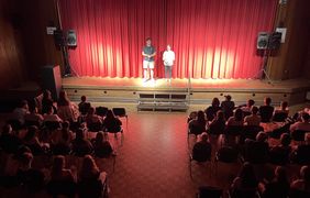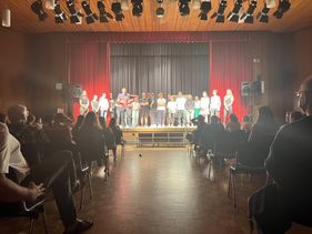 „Freundschaft bedeutet, wenn jeder alles in den Ring wirft, was er hat.“ Das Ergebnis dieser Lebensweisheit konnte sich sehen lassen! Motiviert wurde stundenlang geprobt, weder Nachmittage noch Samstage waren vor den Schauspielfreudigen sicher, Plakate wurden kreiert und aufgehängt, Programmhefte erstellt, Licht- und Tontechniker kämpften sich durch Schalter und Optionen, Durchsagen und Anmoderationen wurden entwickelt, Freunde und Familien wurden eingeladen und dann war es tatsächlich soweit: Am Dienstag, den 14.06.2022 um 19 Uhr öffnete sich endlich der Vorhang und die 85 Zuschauer, die der Veranstaltung einen würdigen Rahmen gaben, durften das Stück „Flucht 2.0.“ genießen. Es gab Momente zum Nachdenken, zum Lachen, zum Traurigsein und „Sich-Selbst-Entdecken“, es gab vollen Einsatz des gesamten Kurses, Überraschungen und angenehm „unperfekten“ Charme. Vielen Dank dafür!