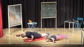 Vielen Dank auch an alle anwesenden Zuschauerinnen und Zuschauer, die zusammen eine Spendensumme von 334 Euro zusammenbrachten (nach dem Wunsch des Kurses an Unicef und die Aktion „Deutschland hilft“ für Kinder in der Ukraine gespendet). Dass diese sehr erfreuliche Summe nun denjenigen zu Gute kommt, die in diesen Tagen besonders unter Flucht, Gewalt und Krieg leiden, darf alle Beteiligten stolz machen – genau wie die überwiegend hervorragenden Leistungen im Prozess dieses Stücks! Es hat Spaß gemacht!