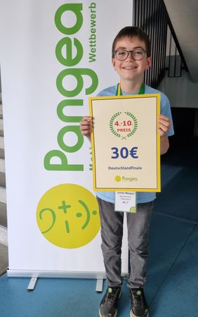 Neben dem sicherlich besonderen Gefühl zu den deutschlandweit fünf besten Teilnehmer*innen zu gehören, durfte sich Jonas noch über die begehrte Pangea-Goldmedaille und eine Tüte voller mathematischer Knobeleien freuen. Als einer der „Top 10“ bekam er zudem noch einen Geldpreis über 30 Euro.