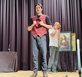 Die zweite, dieses Mal englische Vorstellung, „Romeo and Juliet: Revisited“, unter der Leitung von Lehrer Andreas Bergheim, brachte eine moderne und leicht veränderte Version von Shakespeares klassischem Werk auf die Bühne. Der Kurs Darstellendes Spiel der Jahrgangsstufe 10 stellte die verfeindeten Familien der beiden Liebenden in den Mittelpunkt. Trotz aller Widrigkeiten finden Romeo und Julia die Freiheit, sich heimlich zu lieben und zu heiraten. Doch wie es bei tragischen Liebesgeschichten oft der Fall ist, führt ein Missverständnis zur verhängnisvollen Wendung: Julia nimmt ein Gift, das sie in einen todesähnlichen Schlaf versetzt. Romeos irrige Annahme, dass seine große Liebe tot ist, führt zu einem herzzerreißenden Finale, das auch Julia letztlich nicht überlebt.